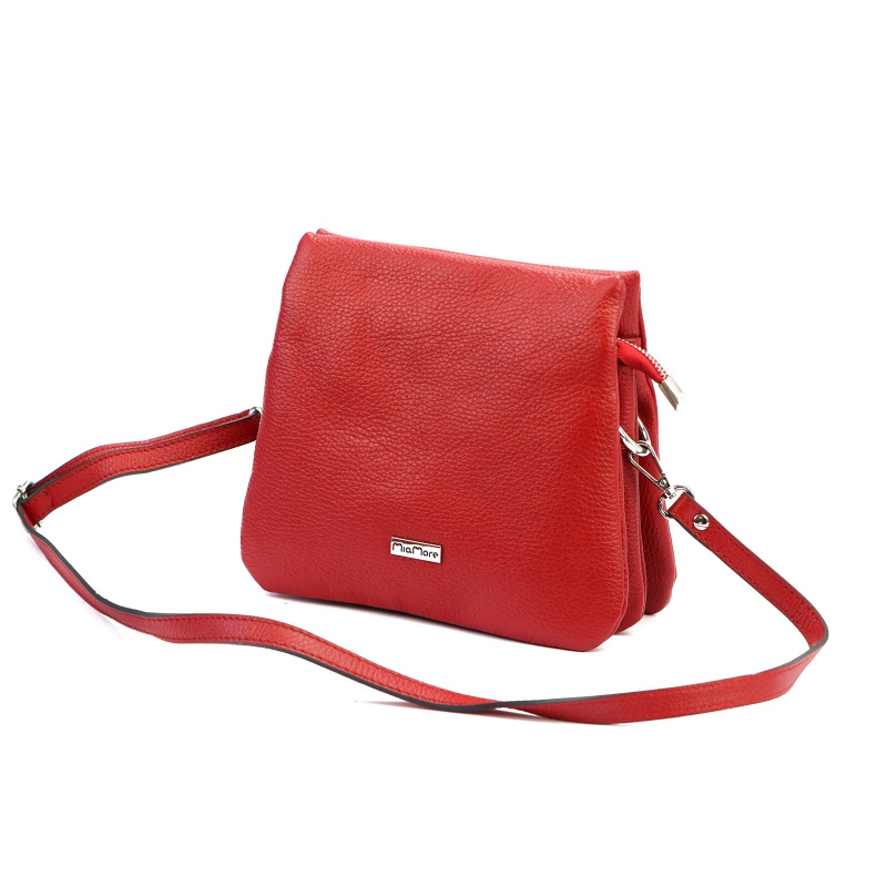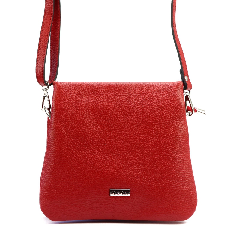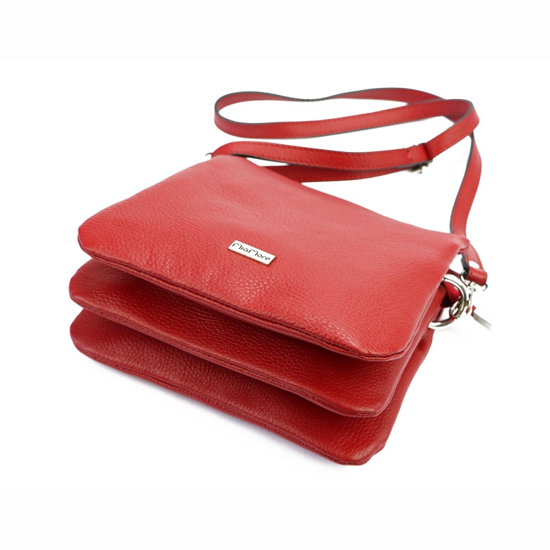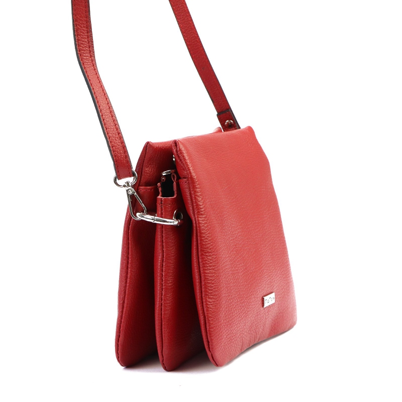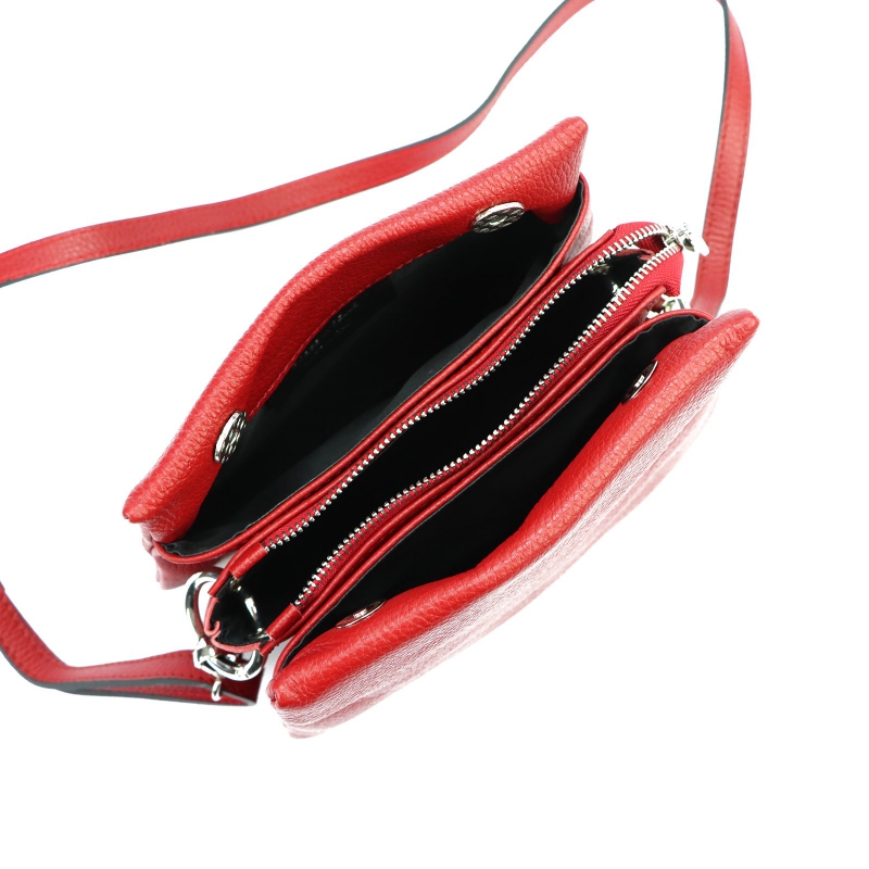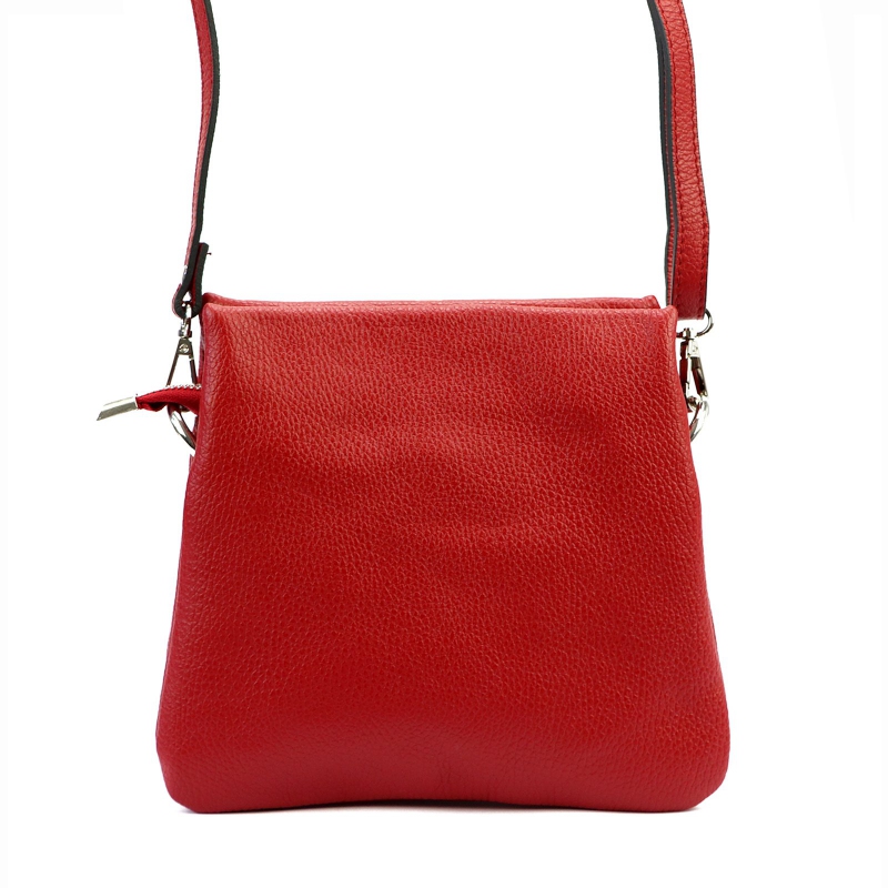 Červená kožená crossbody kabelka je vyrobená v Taliansku podľa poslednej módnych trendov a ako materiál bola použitá prírodná talianska koža.
