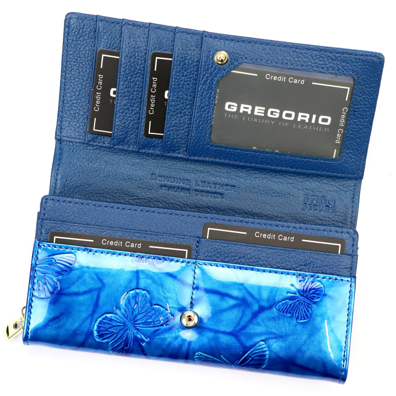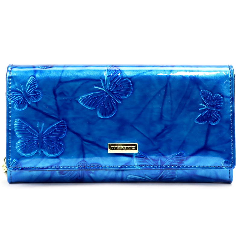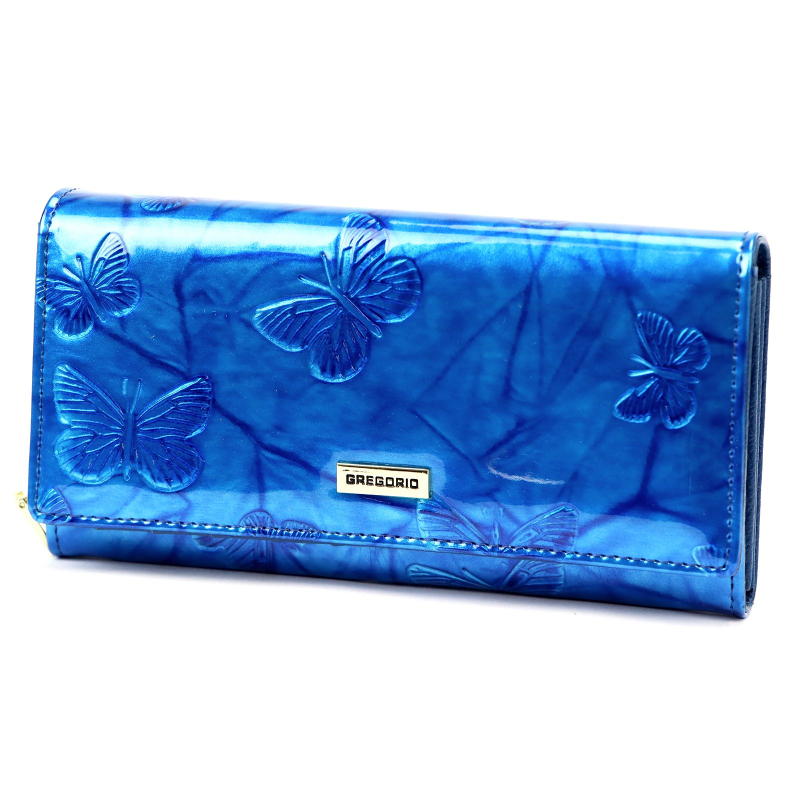 Kožená dámska peňaženka s motýľmi v nádhernej modrej farbe, je vďaka veľkému množstvu vreciek nielen krásna, ale aj praktická.