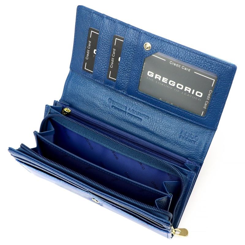 Má 2 priehradky na bankovky a jedno vrecko so zipsom, ďalej 2 na kovové mince, rovnako so zapínaním na zips. Ďalej je vo vnútri dámskej peňaženky 9 priehradiek vhodných napríklad na kreditnú kartu, veľké vrecko na vodičský, občiansky a iný preukaz.