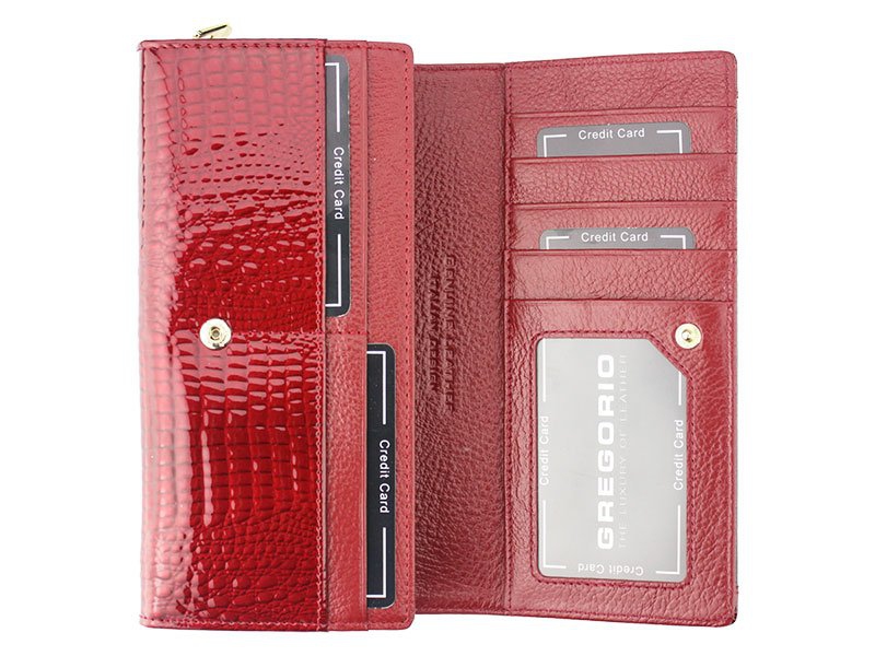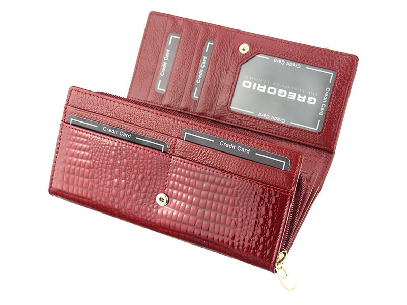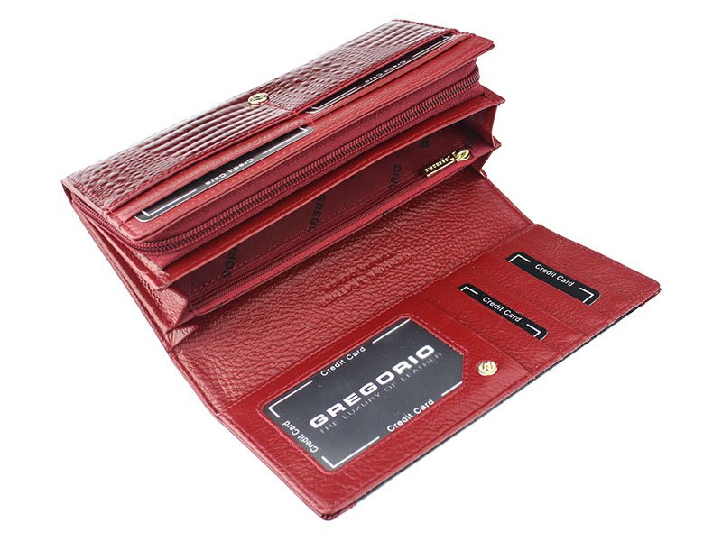 Kožená dámska peňaženka v luxusnej červenej farbe je vďaka veľkému množstvo kapsičiek nielenkrásna, ale aj praktická.