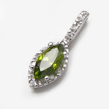 Strieborný prívesok s kubického zirkónom smaragdovo zelenej farby je lemovaný jemnými boli zirkónikmi. Strieborné telo šperku je rhodiováno, čo šperku dodáva exkluzívny vzhľad bieleho zlata.