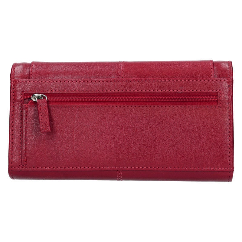 Zo zadnej strany dámskej peňaženky nájdeme veľké vrecko na zips, vnútorné usporiadanie peňaženky potom tvoria 3 priehradky na bankovky, 2 priehradiek na doklady, alebo prípadne napríklad účtenky, 10 priehradiek na vernostné a kreditné karty a jedno veľké delené vrecko na kovové mince.