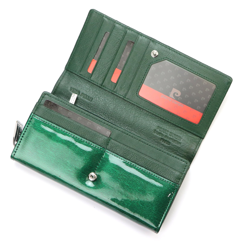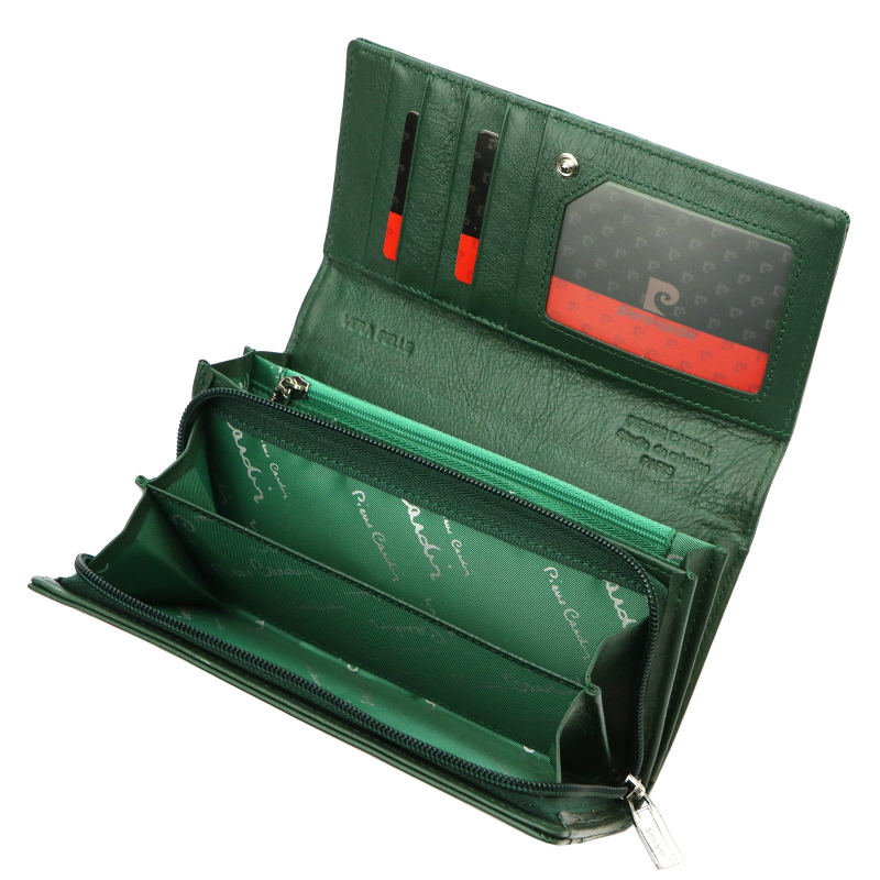 Luxusná smaragdovo zelená dámska peňaženka značky Pierre Cardin je vyrobená z kvalitnej prírodnej kože.