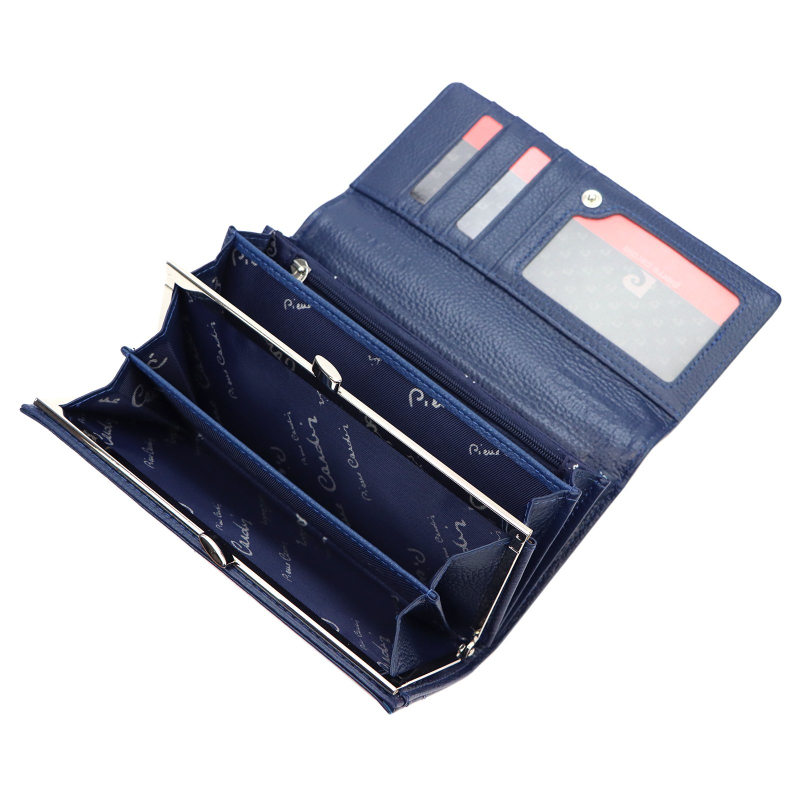 Luxusná dámska peňaženka značky Pierre Cardin v námornej tmavo modrej farbe, je vyrobená z kvalitnej prírodnej kože.