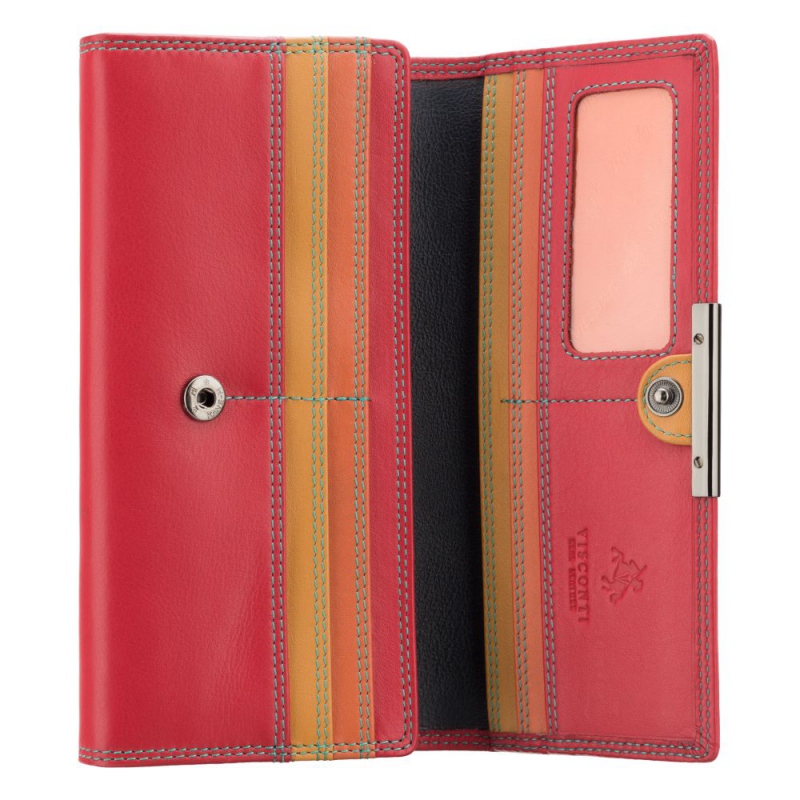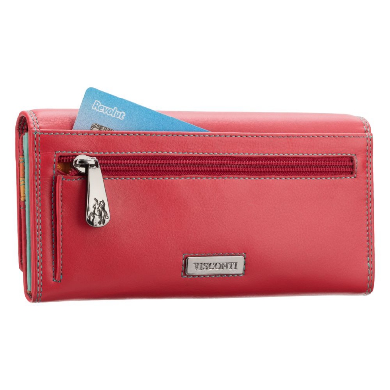 Luxusná dámska peňaženka Visconti sa vyznačuje na omak príjemnú mäkkou kožou, dekorovanou dvojitým obšitím. Aj pri použití kvalitnej prémiovej prírodnej kože má ale stále vynikajúci pomer ceny v kombinácii s trvanlivým, praktickým a nadčasovým dizajnom.