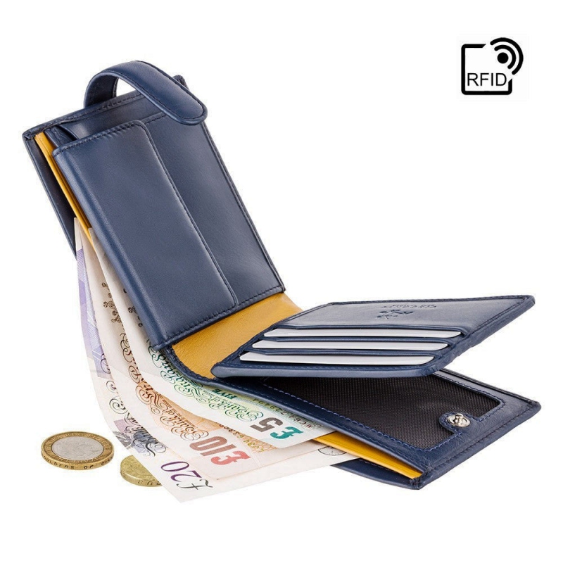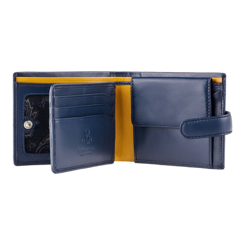 Modrá pánska kožená peňaženka a prackou sa vyznačuje na dotyk príjemnou prémiovou prírodnou kožou, kvalitným ručným prešitím a značkovou podšívkou so znakmi Visconti. Pánska peňaženka bola farebne kombinovaná tak, aby poskytovala čo najkrajší vizuálny zážitok.