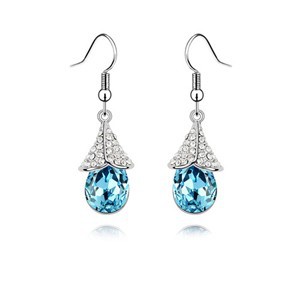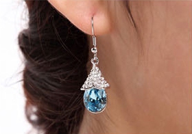 Telo náušníc swarovski elements je posiate bielymi kryštálikmi a šperku dominuje modrý kamienok. K náušniciam je možné zakúpiť aj rovnako farebne ladený prívesok, náramok, prsteň a mať tak kompletný set šperkov Swarovski elements.