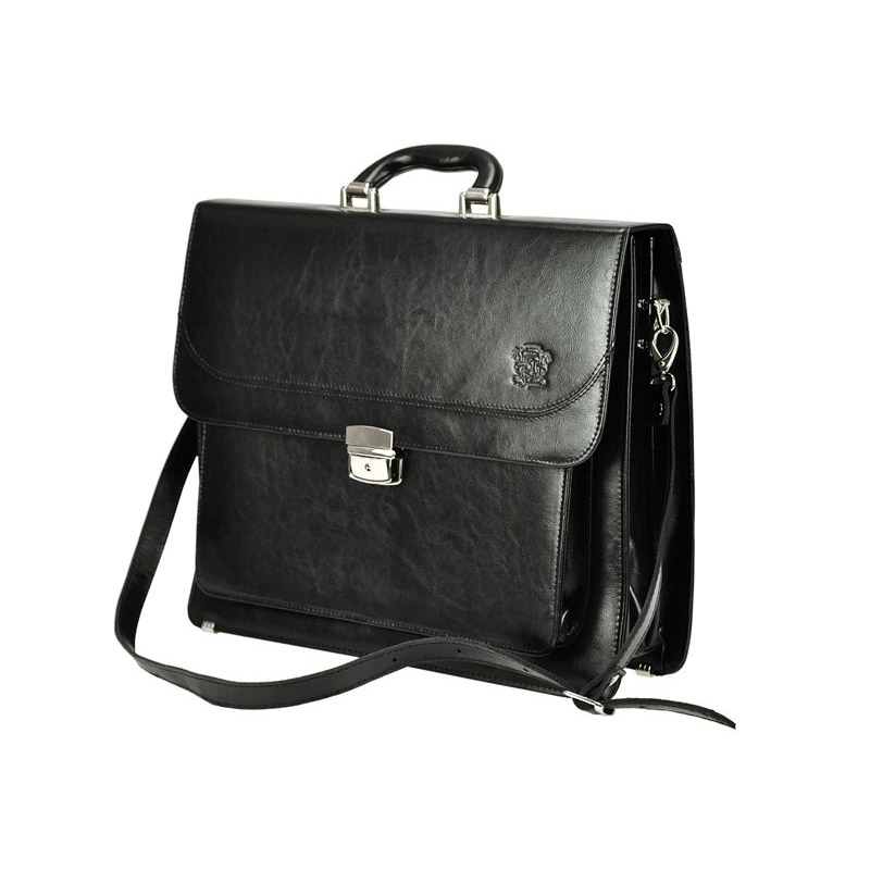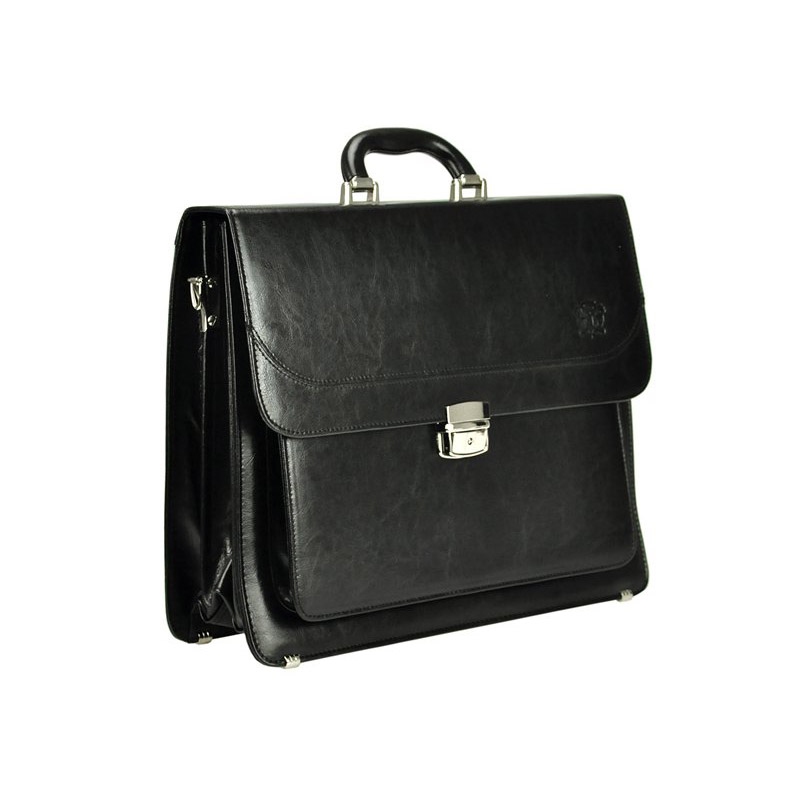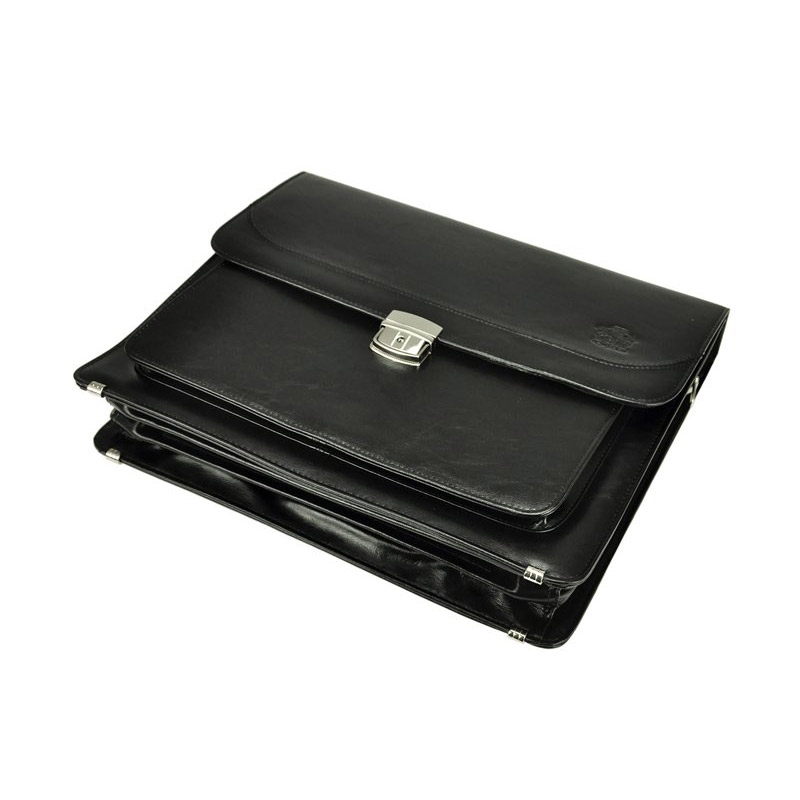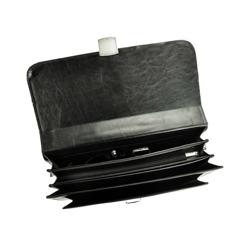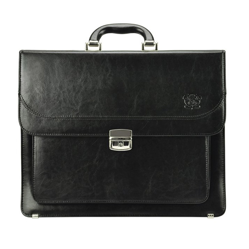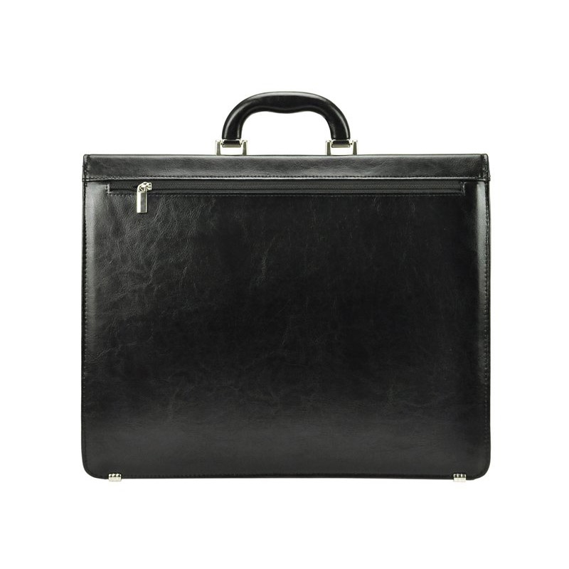 Klasická, pánska aktovka, vyrobená z kvalitnej prírodnej kože. Aktovka má trojkomorovú konštrukciu s centrálnou priehradkou na zips. Zadná priehradka je vybavená mini organizérom, ktorý sa skladá z vrecka na telefón, piatich slotov na karty a troch pútok na perá. Na prednej stene aktovky je ďalšia veľká kapsa. Na zadnej stene nájdete ešte jednu všitou kapsu uzatvárateľnú na zips. Pánska aktovka je opatrená blokovacím zámkom uzatvárateľným na kľúč. Aktovka je vybavená pevnou rukoväťou a odnímateľným ramenným popruhom. Kovové kovania chráni spodnú časť aktovky pred poškodením.