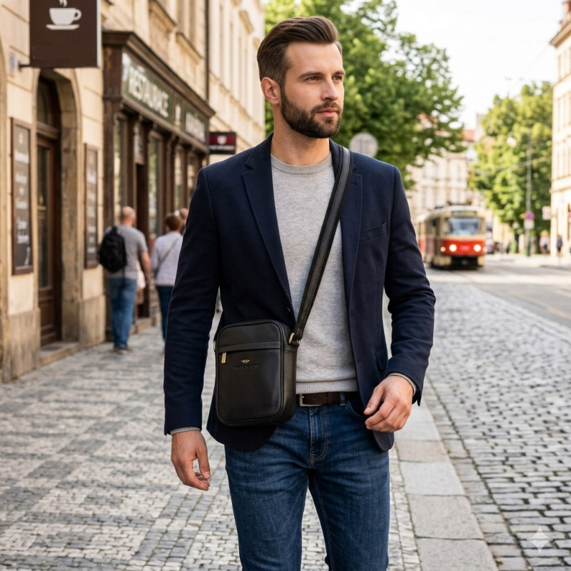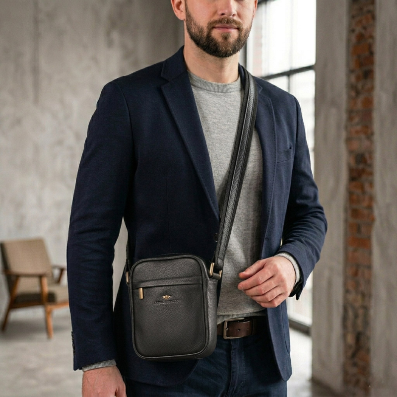 Značková čierna pánska kožená crossbody taška Peterson je vyrobená z kvalitnej prírodnej kože. Pánska crossbody je rozdelená na hlavné veľké vrecko, ktoré sa uzatvára pomocou zipsu, vpredu potom nájdeme vrecko na zips pre rýchly prístup k často používaným veciam. Zadná strana pánskej crossbody tašky tiež obsahuje uzatvárateľné vrecko na zips.