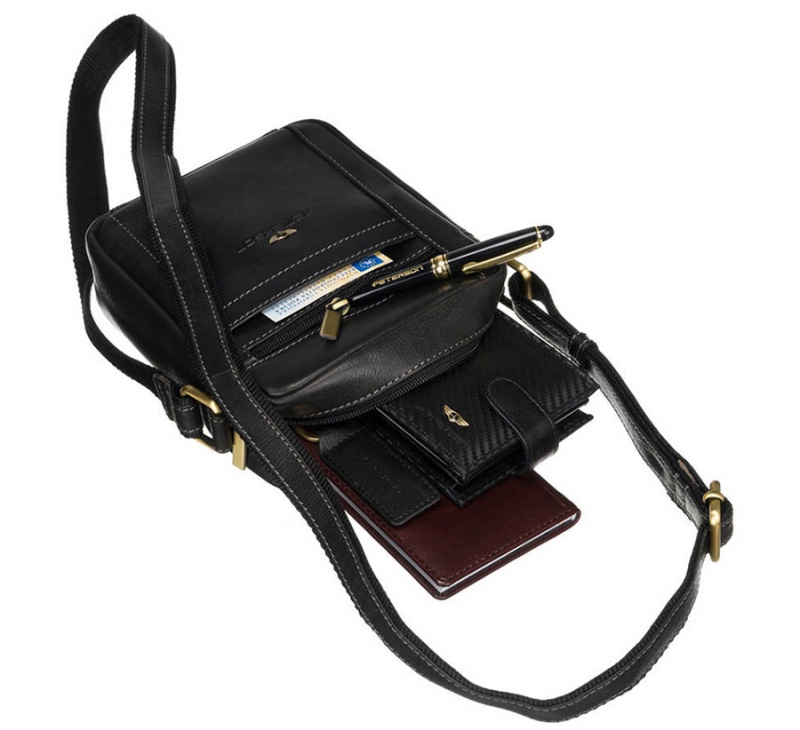 Značková pánska kožená crossbody taška Peterson je vyrobená z kvalitnej prírodnej kože. Pánska crossbody je rozdelená na hlavné veľké vrecko, vpredu potom nájdeme vrecko na zips a jednu otvorenú kasu pre rýchly prístup k často používaným veciam. Zadná strana pánskej crossbody tašky tiež obsahuje uzatvárateľné vrecko na zips.