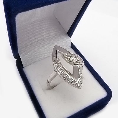 Moderný strieborný prsteň patrí medzi impozantný strieborné šperky už na prvý pohľad. Telo šperku je čiastočne ozdobené bielymi zirkonky a čiastočne má rhodiovaný úpravu, dodávajúci striebornému prsteňa exkluzívny vzhľad oveľa drahšie prsteňov, vyrábaných z bieleho zlata.