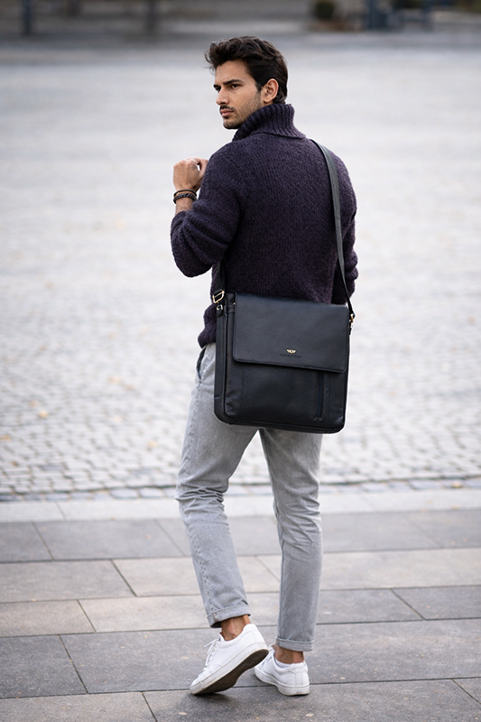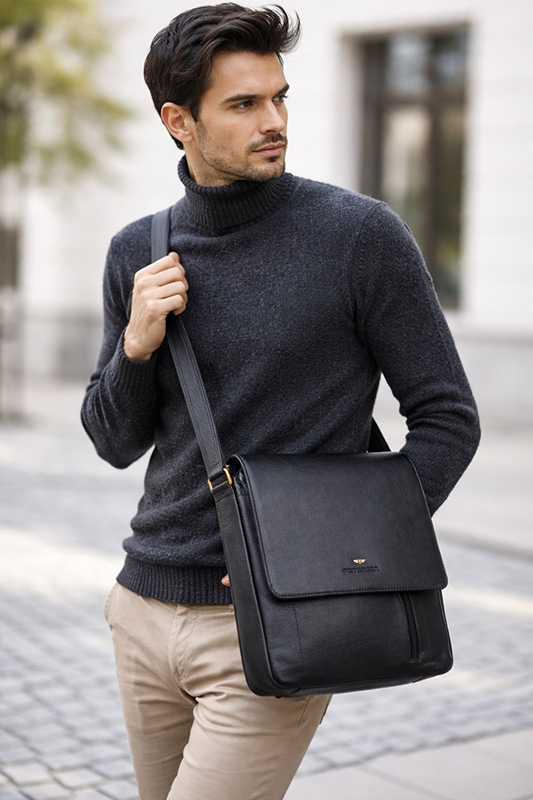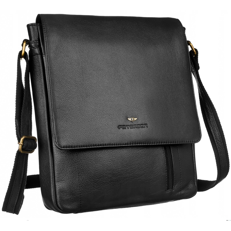 Veľká čierna pánska kožená taška cez rameno (29 x 31 x 6 cm) Peterson typu messenger, je vyrobená z kvalitnej, príjemnej, mäkkej prírodnej kože. Pánska značková crossbody je rozdelená na hlavné veľké vrecko, ktoré sa uzatvára pomocou zipsu a otvorené predné vrecko a vrecko so zipsom. Celá taška sa potom uzatvára pomocou chlopne na kvalitný magnetický patent. Zadná strana pánskej koženej tašky tiež obsahuje veľké uzatvárateľné vrecko na zips.