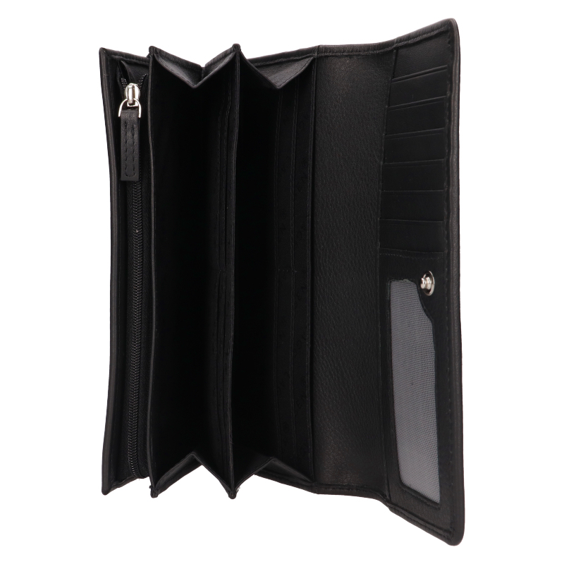 Vnútri dámskej peňaženky nájdeme 2 priehradky na papierové bankovky a dve priehradky so zipsom na kovové mince. Ďalej má peňaženka 15 priehradiek vhodných napríklad na kreditnú kartu a 2 väčšie vrecká na doklady, zo zadnej strany je peňaženka vybavená ďalším vreckom na zips. Súčasťou balenia peňaženky je aj vkusná darčeková krabička.