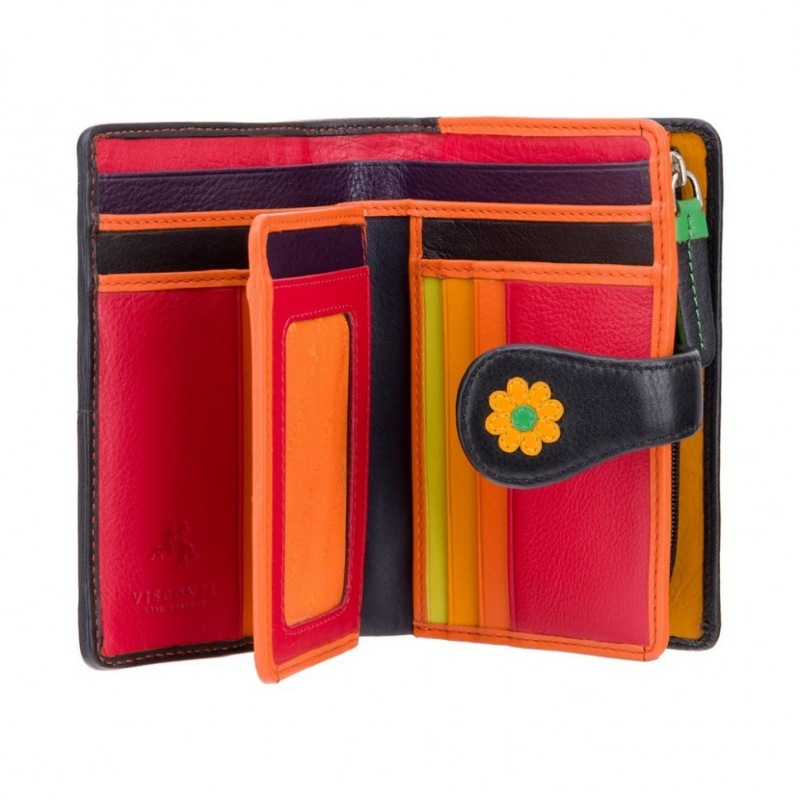 Značková dámska peňaženka Visconti sa vyznačuje na dotyk príjemnou mäkkou kvalitnou prémiovou prírodnou kožou v kombinácii s trvanlivým, nevšedným vzhľadom, ktorý nebude mať každý. Každá kvetinka peňaženky je ručne prišívaná dokonale precíznymi a presnými stehmi.