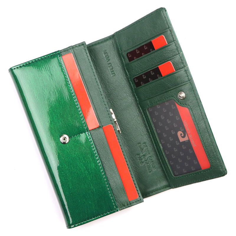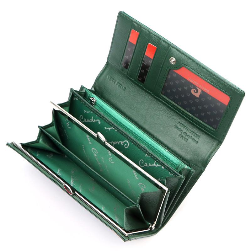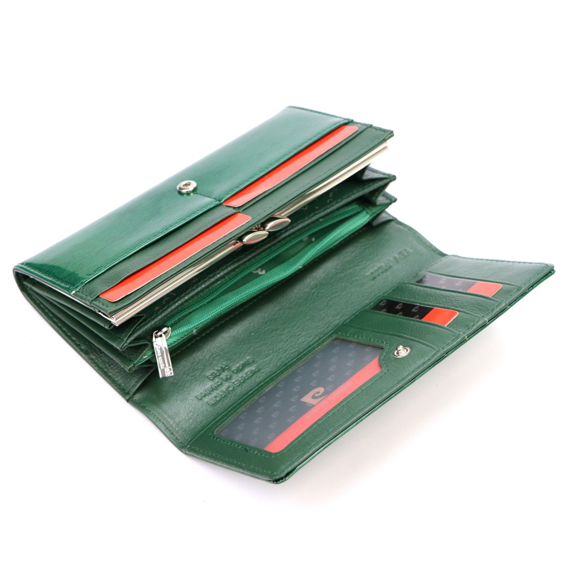 Značková smaragdovo zelená dámska peňaženka značky Pierre Cardin je vyrobená z kvalitnej prírodnej kože.
