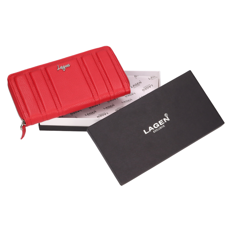 Vnútri dámskej peňaženky Lagen nájdeme 10 priehradiek na kreditnú kartu, 4 priehradky na bankovky, alebo prípadne na mobilný telefón, vrecko so zipsom na kovové mince a ešte ďalšie tri postranné vrecká vhodné napríklad na vodičský, alebo technický preukaz od vozidla. Súčasťou balenia peňaženky je aj vkusná darčeková krabička.