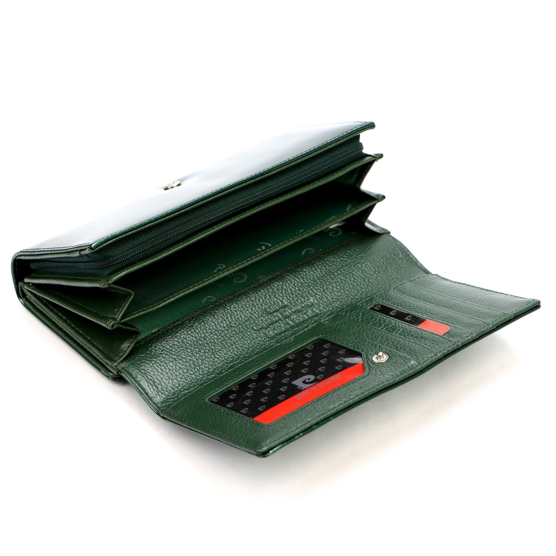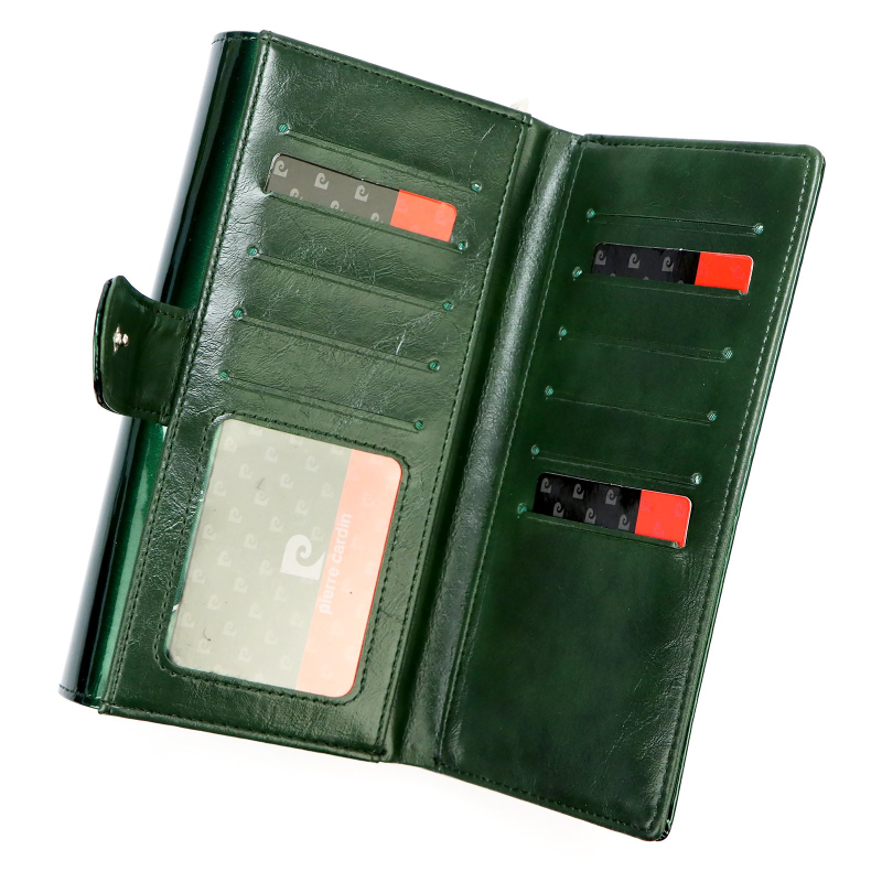 Značková dámska peňaženka Pierre Cardin je vyrobená z kvalitnej prírodnej kože a odolnej farebnej laminátovej vrstvy, vďaka ktorej si uchová svoj pôvodný vzhľad a ľahko sa udržuje. Vďaka mnohým vrecúškam pojme dámska peňaženka veľa vecí.