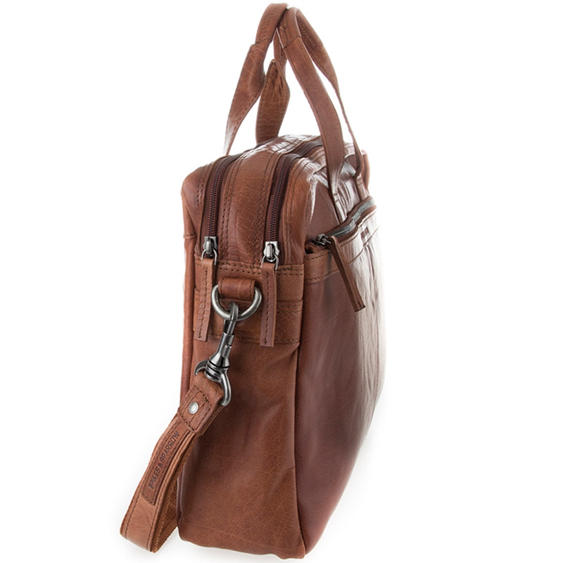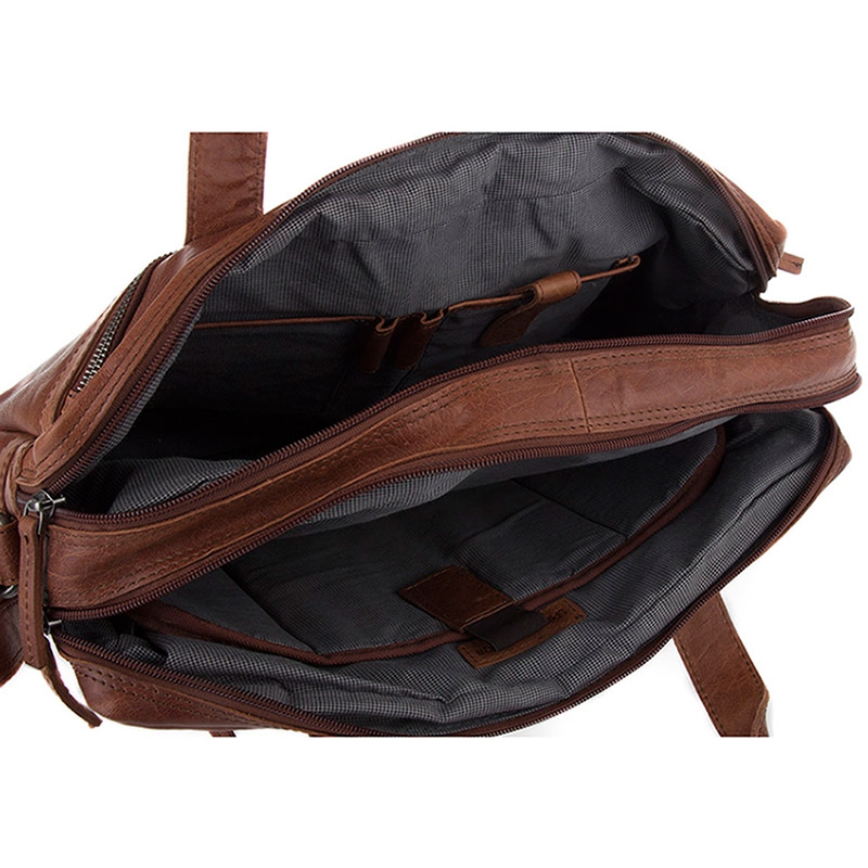 Značková kožená taška Spikes & Sparrow je nielen elegantný, ale vďaka prepracovanému vnútornému rozloženiu tiež praktická. Skladá sa z dvoch hlavných vreciek, z ktorých jedna pojme notebook až do veľkosti 13,3 "palcov (33 x 24 cm) a do ďalších priehradiek si môžete uložiť dokumenty do veľkosti A4. Pánska taška na notebook má odnímateľný ramenné popruh, tak že ide nosiť nielen cez rameno, ale aj klasicky v ruke pomocou dvoch kožených rukoväťou.