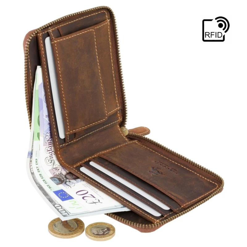 Značková pánska kožená peňaženka na zips sa vyznačuje na dotyk príjemnou prémiovou prírodnou kožou, kvalitným ručným prešitím a vkusnou podšívkou Visconti.