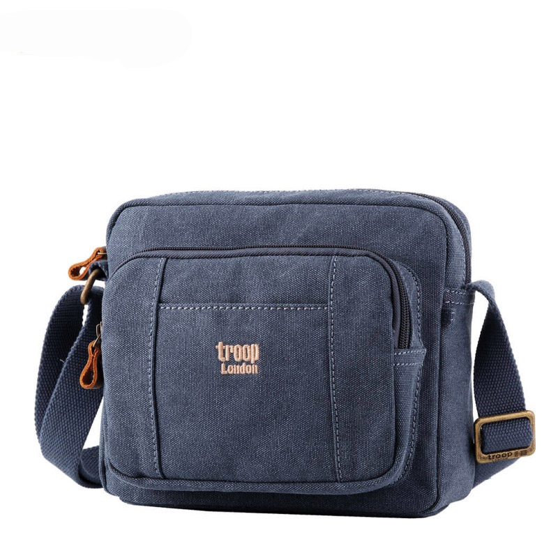 Značková taška Troop London je vyrobená z kvalitného pevného plátna. Predná časť obsahuje kapsičku napríklad na mobilný telefón, perá, peňaženku a iné drobnosti, väčšie vrecko potom môže slúžiť napríklad na prenos knihy, zápisníku, alebo tabletu.