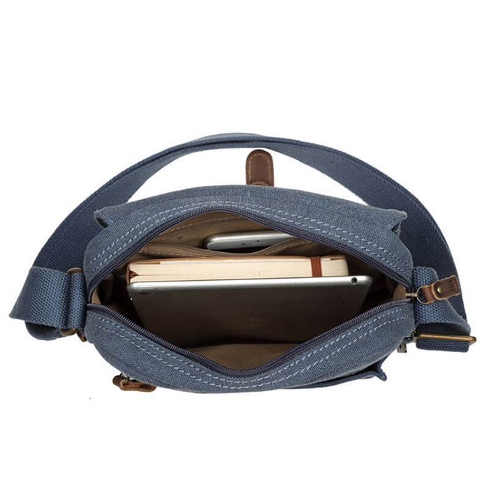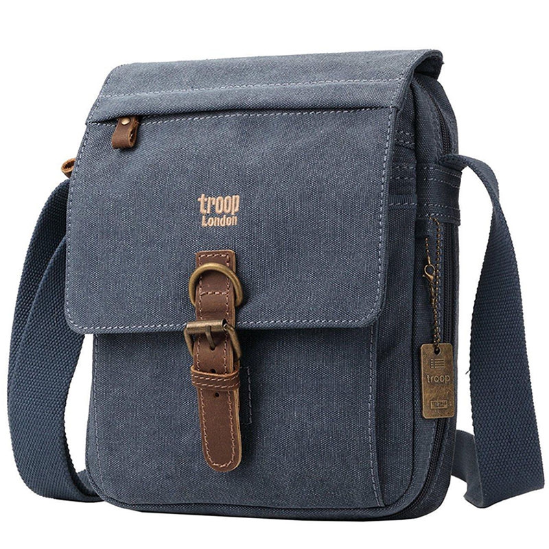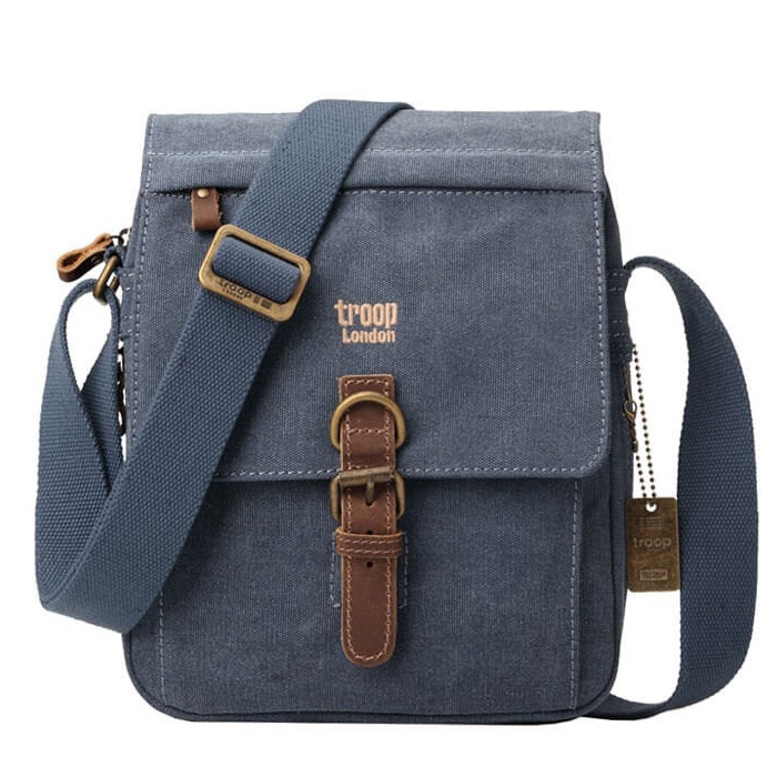 Značková crossbody Troop London je vyrobená z kvalitného pevného plátna, hlavné vrecko obsahuje aj menšie vrecko na drobnosti uzatvárateľné zipsom.