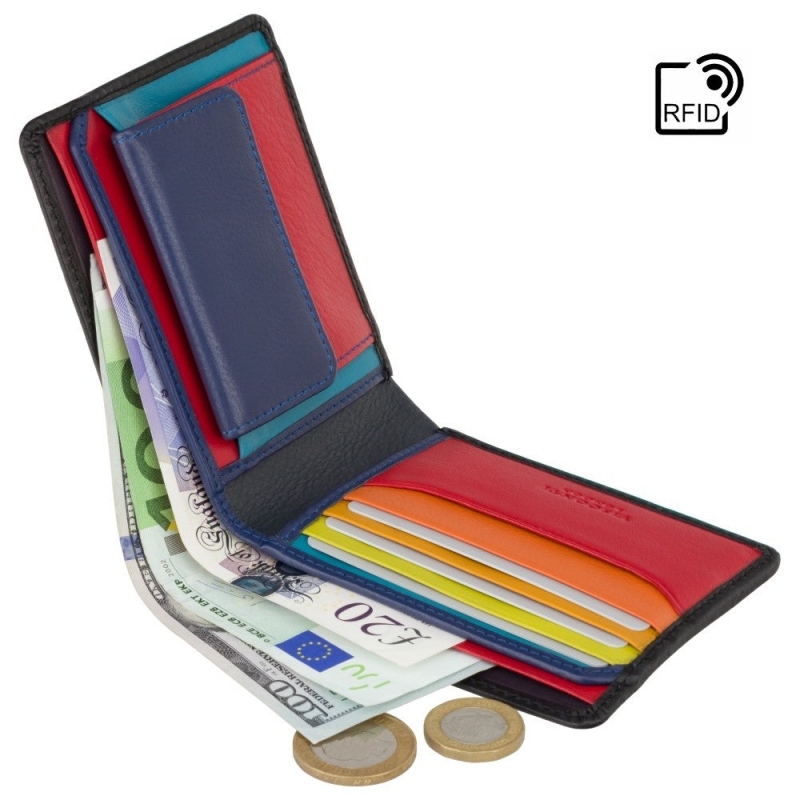Peňaženka má 2 priehradky na papierové bankovky vhodné pre eurové aj zahraničné meny, jedno vrecko na kovové mince, 4 sloty na karty, 2 sloty na osobné dokumenty, alebo prípadne aj na karty a na zadnej strane priehradku na kartu s funkciou Tap & Go (Prilož a choď). Súčasťou balenia je aj darčeková krabička na pánsku peňaženku.