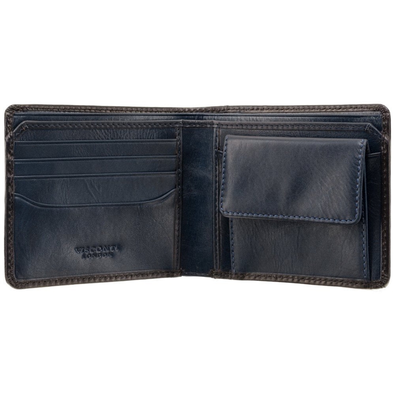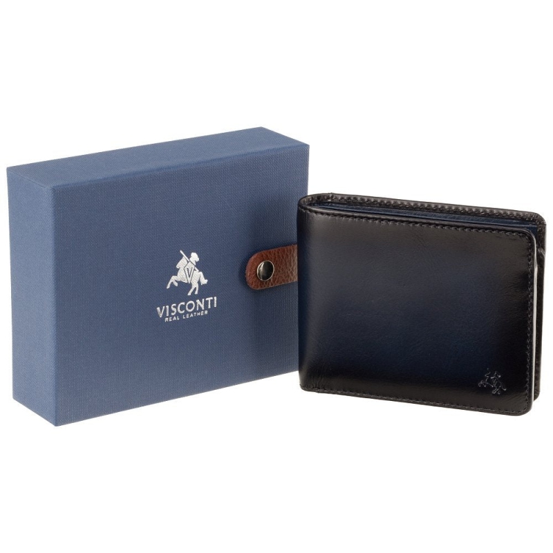 Značková pánska modrá kožená peňaženka Visconti sa vyznačuje na dotyk príjemnou mäkkou prémiovou prírodnou kožou v nevšednom modrom dizajne, ktorý nebude mať každý, kvalitným ručným prešitím a značkovou podšívkou so znakmi Visconti.